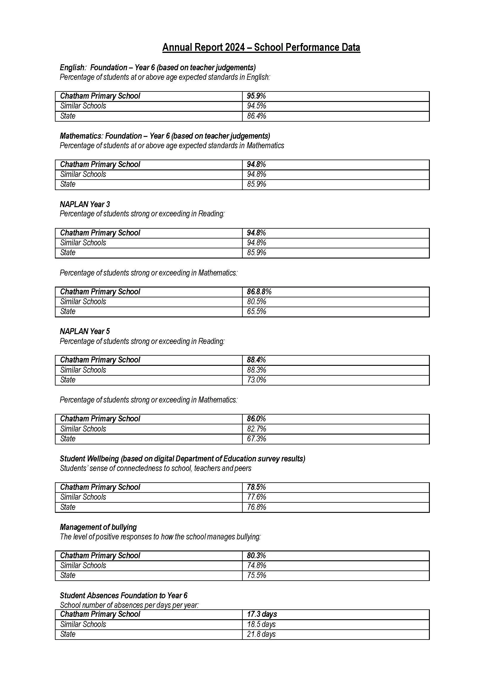 Chatham Primary School - Annual Report